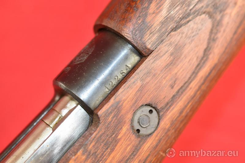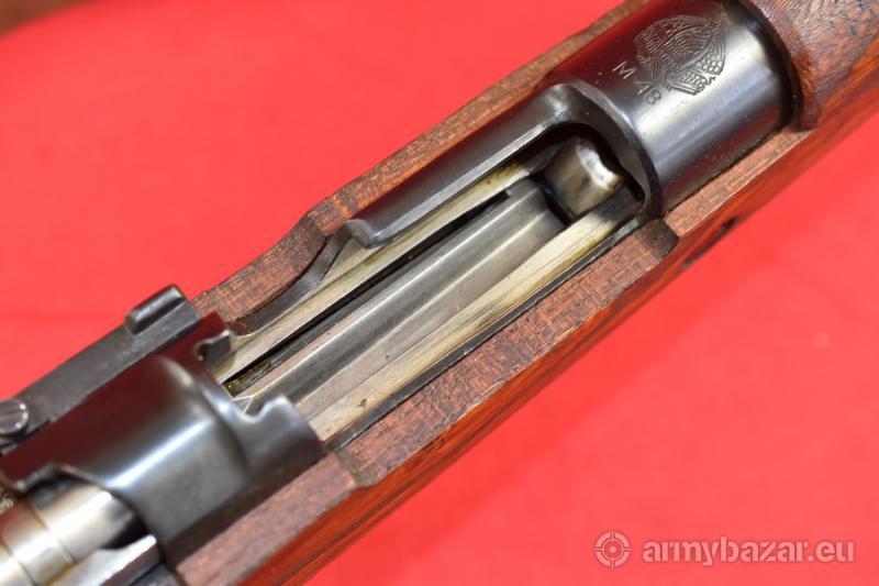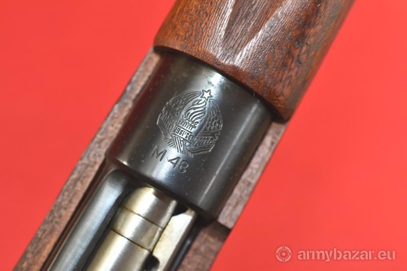 Opis: #7651 Karabinek Mauser M48 kal. 8x57IS. Produkcja jugosłowiańskich zakładów Kragujevac (Preduzece 44). Stan bardzo dobry - wykazuje ślady normalnej, umiarkowanej eksploatacji. Egzemplarz zgodny numerycznie. W niektórych miejscach obecny jest nalot rdzy - wynikający z wieloletniego składowania. Przy kabłąku spustowym nadal obecna jest etykieta magazynowa w języku serbskim. Przewód lufy: w stanie fabrycznym. BROŃ DOWOZIMY NA TERENIE CAŁEGO KRAJU - RAZ W MIESIĄCU