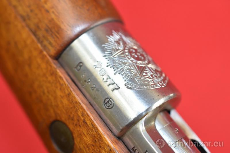 Opis: #7706 Karabin Mauser 1908 produkcji niemieckiej Deutsche Waffen- und Munitionsfabrik (DWM). Kal. 7x57. Produkcja eksportowa do Brazylii z okresu 1908-1914 (dostawy przerwał wybuch I wojny światowej). POLECAMY! Przewód lufy: fabryczny. BROŃ DOWOZIMY NA TERENIE CAŁEGO KRAJU - RAZ W MIESIĄCU