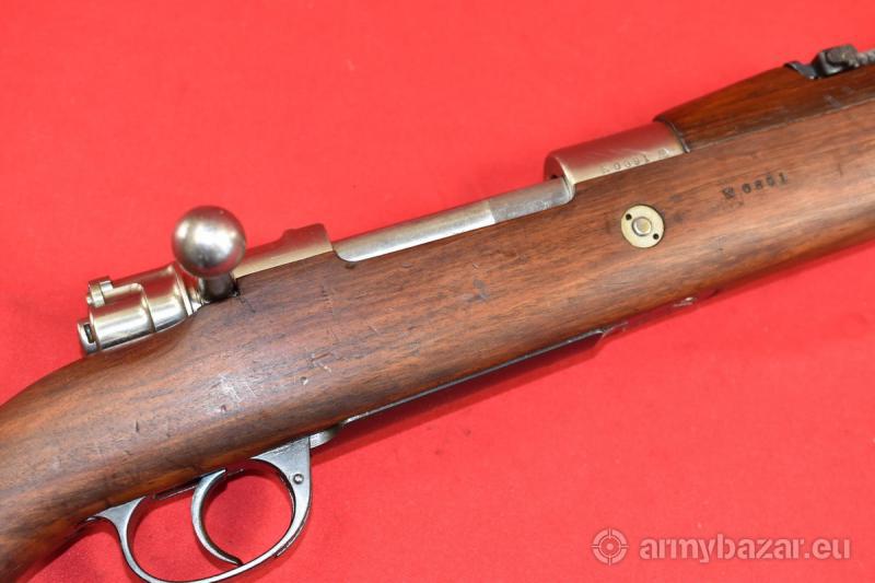 Opis: #7707 Karabin Mauser M1909 kal. 7,65 Arg. Produkcja eksportowa zakładów DWM z okresu sprzed I wojny światowej - przeznaczona dla Argentyny. Pełna zgodność numeryczna - z wyłączeniem wyciora. Mnóstwo drobnych, znakomicie zachowanych odbiorów, znakomicie zachowana kolba. Stan przewodu lufy: fabryczny. BROŃ DOWOZIMY NA TERENIE CAŁEGO KRAJU - RAZ W MIESIĄCU