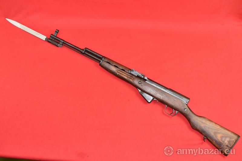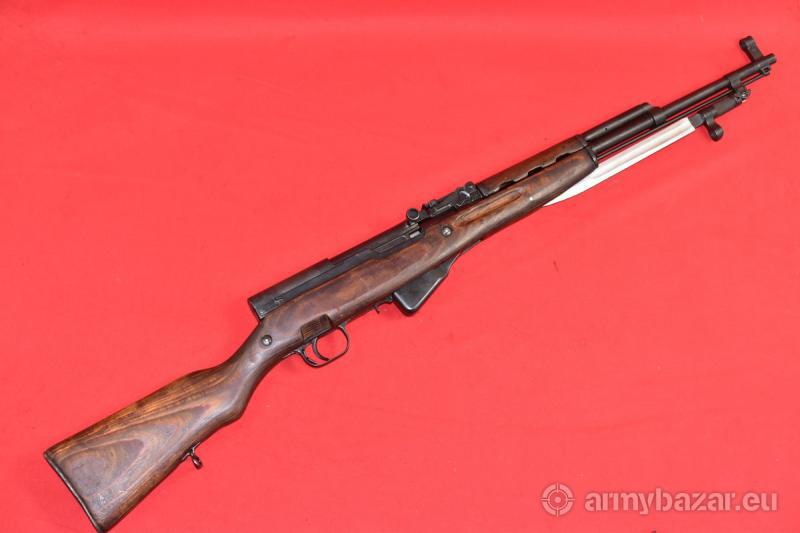 Opis: #7708 Karabinek samopowtarzalny SKS kal.7,62x39 produkcji radzieckich zakładów w Tule. Z oznaczenia producenta i daty stemplowanej na pokrywie komory zamkowej w przypadku SKSów Tuła zrezygnowała w roku 1955. Egzemplarze produkowane od tego momentu - czyli te z lat 1955 i 1956 - nie miały już w ogóle dat produkcji - a tulską gwiazdę przeniesiono na lewy bok komory zamkowej. Z tego właśnie okresu pochodzi oferowany tutaj egzemplarz i właśnie takie cechy można na nim zaobserwować. Egzemplarz po remoncie - dlatego oksyda nie jest oryginalna, a kolba została przeszlifowana. Przewód lufy: w stanie fabrycznym. BROŃ DOWOZIMY NA TERENIE CAŁEGO KRAJU - RAZ W MIESIĄCU