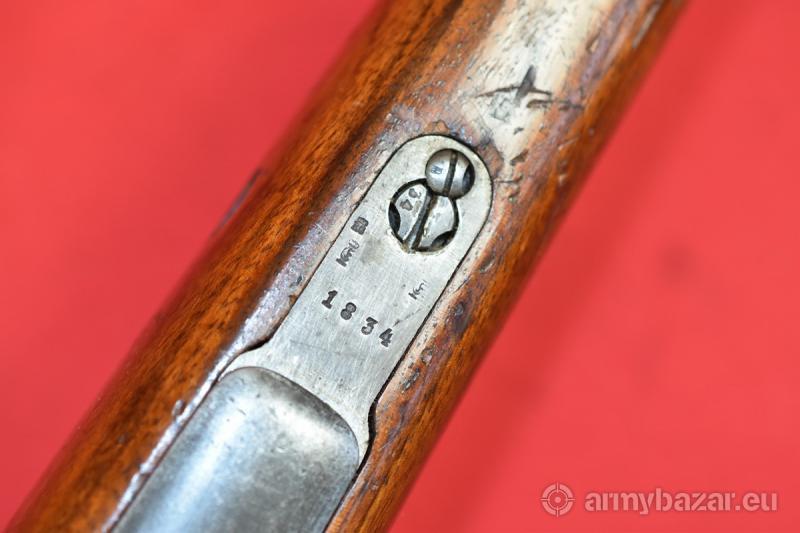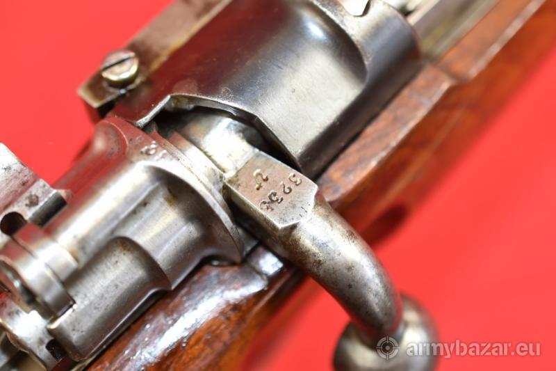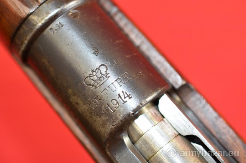 Opis: #7709 Karabinek Mauser 98a kal. 8x57IS. Produkcja Königlich Preußische Gewehrfabrik Erfurt z roku 1914. Egzemplarz niezgodny numerycznie. Zaletą jest brak jakichkolwiek stempli pochodzących z późniejszego okresu - obecne są tylko i wyłącznie stemple fabryczne. Oksyda oryginalna, fabryczna. Przewód lufy: po prostu fabryczny - koronowany na głębokość około 1 cm. Typowy, strychowy egzemplarz. BROŃ DOWOZIMY NA TERENIE CAŁEGO KRAJU - RAZ W MIESIĄCU