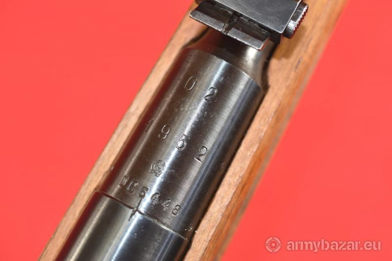 Opis: #7726 Karabin Mosin Wz.91/30 produkcji węgierskich zakładów FEG (kod 02) z roku 1952. Kal. 7,62x54R. Węgierskie Mosiny 91/30 są bardzo cenione na rynku, szczególnie amerykańskim - ze względu na bardzo dobrą jakość wykonania. Były produkowane w latach 1949 - 1955 i używane w armii węgierskiej pod oznaczeniem 48. Minta. Stan broni można określić co najmniej jako bardzo dobry - bliski fabrycznemu. Obecne są tylko nieznaczne ślady składowania oraz niewielkie przebarwienia na drewnie kolby i łoża. Egzemplarz sprawdzony i wypróbowany przez rusznikarza. Pełna zgodność numeryczna. Przewód lufy: fabryczny. BROŃ DOWOZIMY NA TERENIE CAŁEGO KRAJU - RAZ W MIESIĄCU