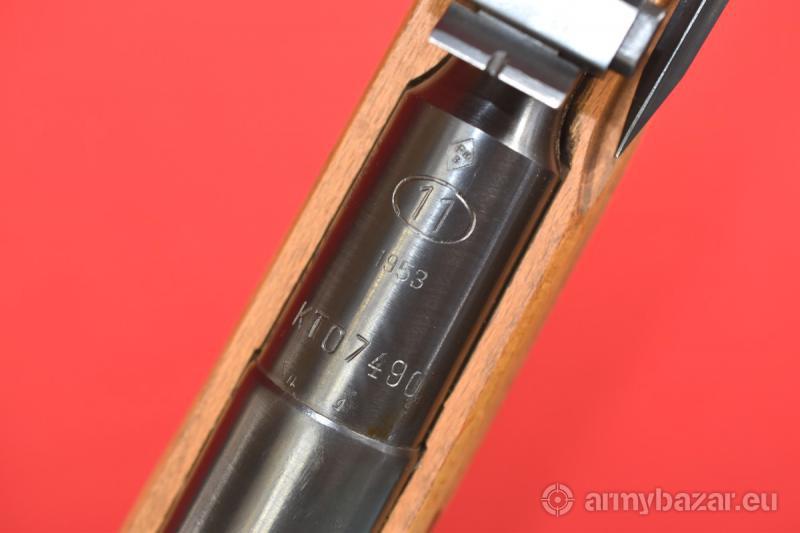 Opis: #7730 Karabinek Mosin Wz.44 produkcji zakładów w Radomiu z roku 1953. Kal. 7,62x54R. Stan bardzo dobry, praktycznie fabryczny. Obecne są ślady składowania / symbolicznego używania - w postaci niewielu minimalnych zadrapań (patrz zdjęcia). Egzemplarz zgodny numerycznie, kompletny, w oryginalnej, fabrycznej oksydzie. Kolba bez żadnego szlifowania, bez przebarwień, bez uszkodzeń. Trzewik oryginalnie bez numeru seryjnego. Na komorze obecne są niemieckie stemple atestu nitro oraz erefenowskie oznaczenia importowe - patrz zdjęcia. Przewód lufy: w stanie idealnym, fabrycznym. BROŃ DOWOZIMY NA TERENIE CAŁEGO KRAJU - RAZ W MIESIĄCU