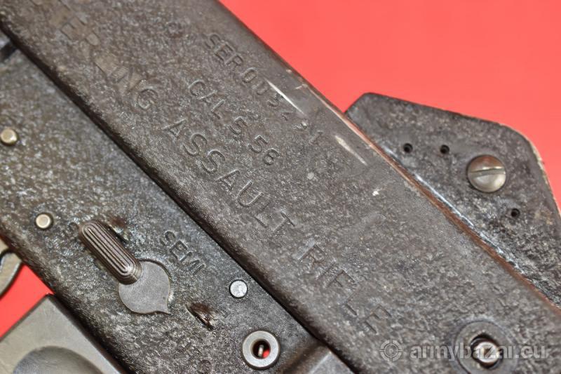 Opis: #7768 Karabin SAR-80 kal. 5,56x45 Typ I, jeszcze z oznaczeniami Sterlinga na komorze zamkowej. Ślady normalnej eksploatacji w postaci zadrapań i przetarć powłoki. Plastiki kompletne, bez żadnych uszkodzeń i bez żadnych napraw. Egzemplarz sprawdzony i wypróbowany przez rusznikarza. W komplecie wojskowy, amerykański magazynek od M16A1 (używany). Przewód lufy: w stanie idealnym, praktycznie fabrycznym. BROŃ DOWOZIMY NA TERENIE CAŁEGO KRAJU - RAZ W MIESIĄCU