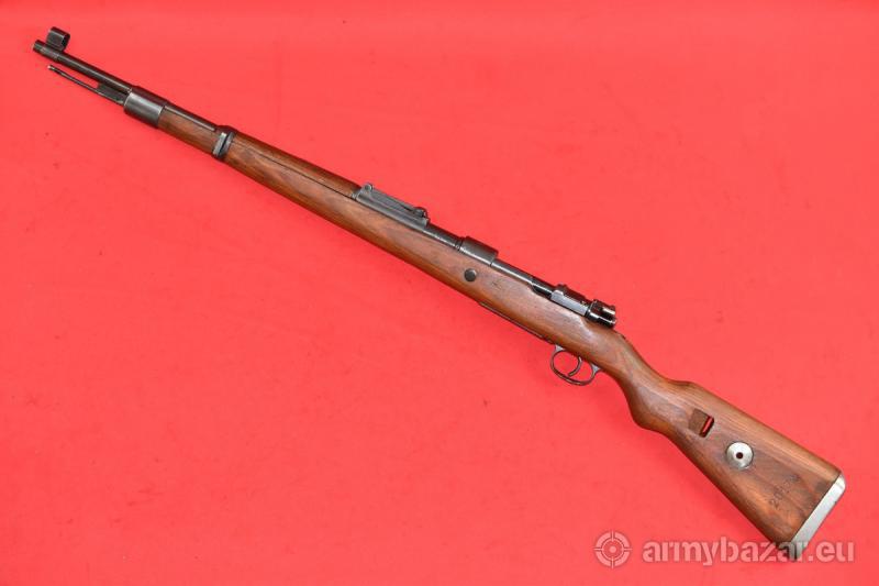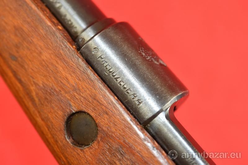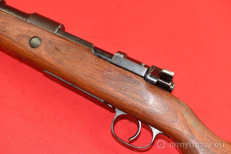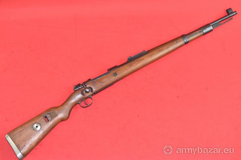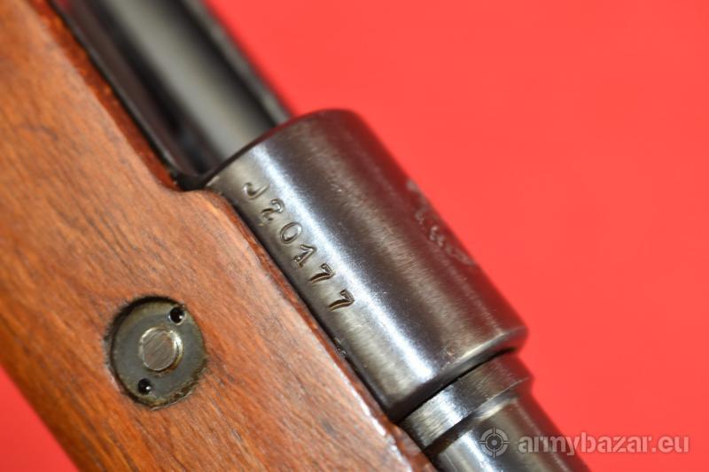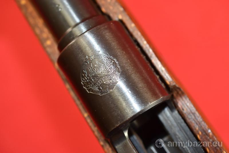 Opis: #7783 Karabinek Mauser K98k kal. 8x57IS powojennej produkcji jugosłowiańskiej firmy Preduzece 44 (Kragujevac). Jak większość takich karabinków został wyprodukowany przy użyciu części produkcji niemieckiej (sprzed maja 1945). Niemiecka jest np. kolba (przeszlifowana i polakierowana), denko magazynka, szczerbinka, bączek tylni itd. Numer zamka niezgodny z numerem komory. Obecne niemieckie stemple importowe oraz atesty CiP. Egzemplarz sprawdzony i wypróbowany przez rusznikarza. Przewód lufy: fabryczny. BROŃ DOWOZIMY NA TERENIE CAŁEGO KRAJU - RAZ W MIESIĄCU