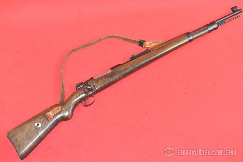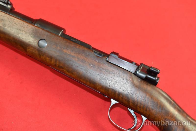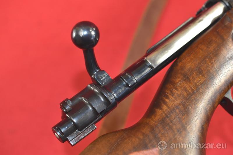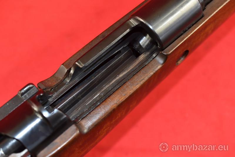 Opis: #6997 Karabinek Mauser K98k kal. 8x57IS. Oferowany egzemplarz pochodzi z dawnej, katalogowej oferty znanej firmy Frankonia Waffen. Wyprodukowany został na bazie oryginalnych części 98k z okresu II wojny światowej. Kolba, lufa (oraz wiele innych drobnych elementów) - fabrycznie nowe. Z kolei oryginalne części zostały w sposób fachowy wyremontowane. Oprócz stempla Frankonii obecne są niemieckie atesty CiP z roku 1994 Egzemplarz sprawdzony i wypróbowany przez rusznikarza. Przewód lufy: jasny - ale niestety, ktoś nie wyczyścił jej po strzelaniu - i w bruzdach obecne są drobne wżery. Gwint ostry, kompletny. BROŃ DOWOZIMY NA TERENIE CAŁEGO KRAJU - RAZ W MIESIĄCU