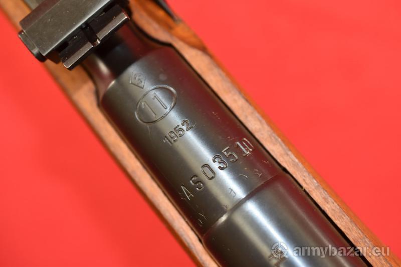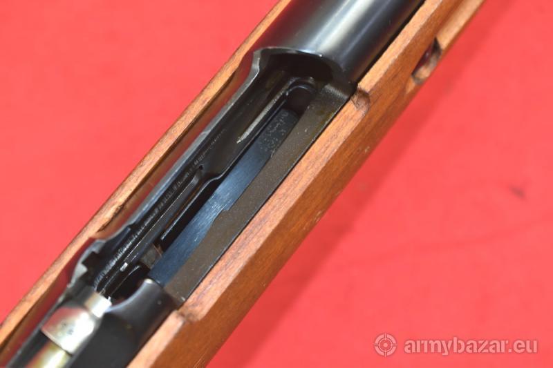 Opis: #7789 Karabinek Mosin Wz.44 produkcji zakładów w Radomiu (ówcześnie: Zakłady Metalowe im Gen. Waltera). Rok produkcji 1952. Kal. 7,62x54R. Stan bardzo dobry, praktycznie fabryczny. Obecne są ślady składowania / symbolicznego używania - w postaci minimalnych zadrapań, oraz minimalnych wgnieceń - oraz przebarwień na elementach drewnianych - wynikających z wieloletniego kontaktu ze smarami / papierem pakowym (patrz zdjęcia). Egzemplarz zgodny numerycznie, kompletny, w oryginalnej, fabrycznej oksydzie. Kolba bez żadnego szlifowania, bez uszkodzeń, bez napraw. Przewód lufy: w stanie idealnym, fabrycznym. Polecamy. Piękność. BROŃ DOWOZIMY NA TERENIE CAŁEGO KRAJU - RAZ W MIESIĄC