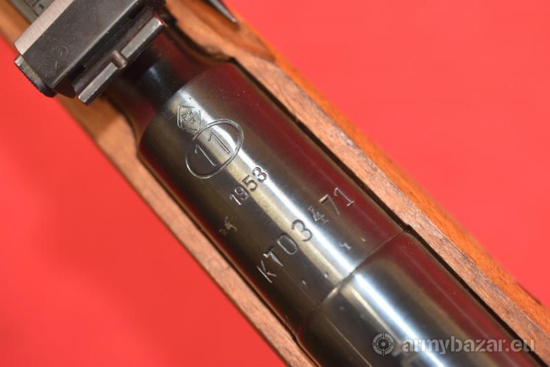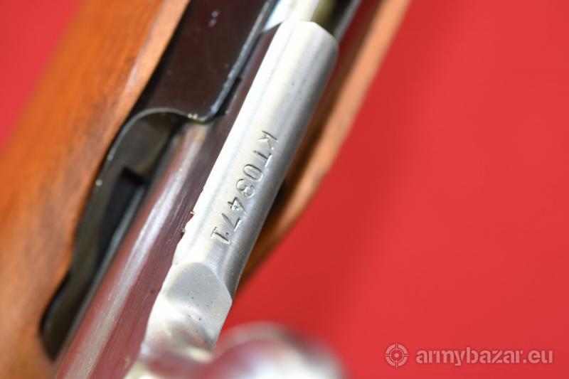 Opis: #7791 Karabinek Mosin Wz.44 produkcji zakładów w Radomiu (ówcześnie: Zakłady Metalowe im Gen. Waltera). Rok produkcji 1953. Kal. 7,62x54R. Stan bardzo dobry, praktycznie fabryczny. Obecne są ślady składowania / symbolicznego używania - w postaci minimalnych zadrapań, oraz minimalnych wgnieceń - oraz przebarwień na elementach drewnianych - wynikających z wieloletniego kontaktu ze smarami / papierem pakowym (patrz zdjęcia). Egzemplarz zgodny numerycznie, kompletny, w oryginalnej, fabrycznej oksydzie. Kolba bez żadnego szlifowania, bez uszkodzeń, bez napraw. Przewód lufy: w stanie idealnym, fabrycznym. Polecamy. Piękność. BROŃ DOWOZIMY NA TERENIE CAŁEGO KRAJU - RAZ W MIESIĄC