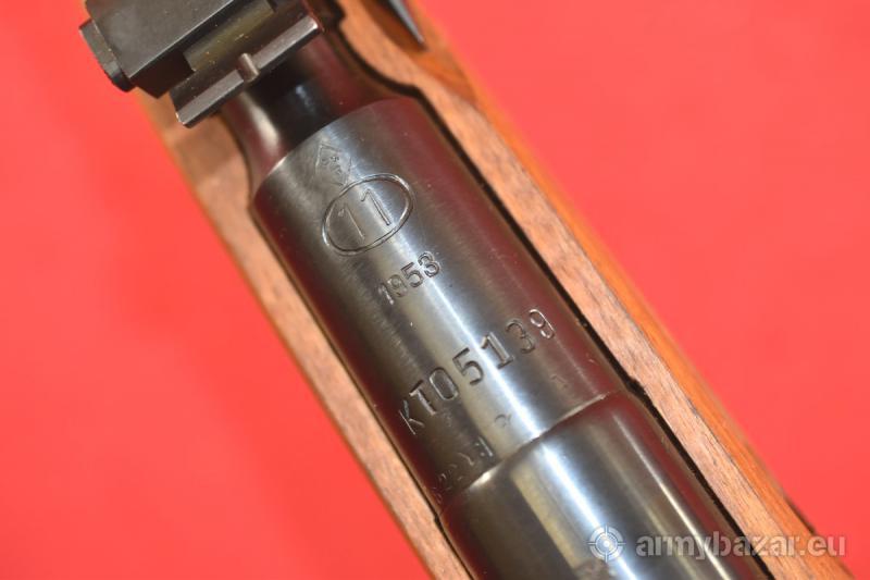 Opis: #7795 Karabinek Mosin Wz.44 produkcji zakładów w Radomiu (ówcześnie: Zakłady Metalowe im Gen. Waltera). Rok produkcji 1953. Kal. 7,62x54R. Stan bardzo dobry, praktycznie fabryczny. Obecne są ślady składowania / symbolicznego używania - w postaci minimalnych zadrapań, oraz minimalnych wgnieceń - oraz przebarwień na elementach drewnianych - wynikających z wieloletniego kontaktu ze smarami / papierem pakowym (patrz zdjęcia). Egzemplarz zgodny numerycznie, kompletny, w oryginalnej, fabrycznej oksydzie. Kolba bez żadnego szlifowania, bez uszkodzeń, bez napraw. Przewód lufy: w stanie idealnym, fabrycznym. Polecamy. Piękność. BROŃ DOWOZIMY NA TERENIE CAŁEGO KRAJU - RAZ W MIESIĄC
