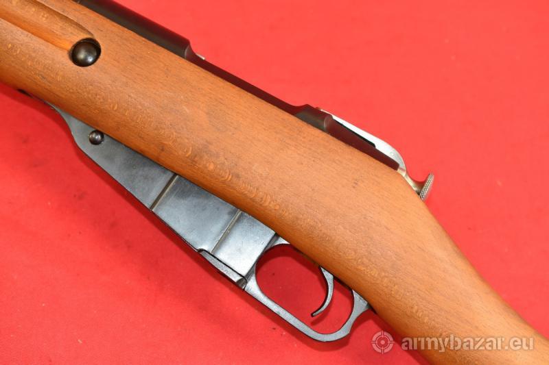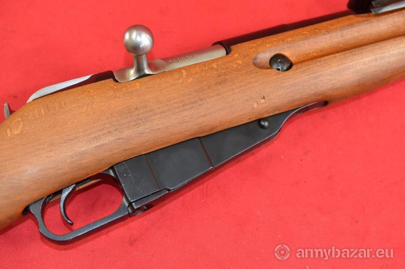 Opis: #7799 Karabinek Mosin Wz.44 produkcji zakładów w Radomiu (ówcześnie: Zakłady Metalowe im Gen. Waltera). Rok produkcji 1953. Kal. 7,62x54R. Stan bardzo dobry, praktycznie fabryczny. Obecne są ślady składowania / symbolicznego używania - w postaci minimalnych zadrapań, oraz minimalnych wgnieceń - oraz przebarwień na elementach drewnianych - wynikających z wieloletniego kontaktu ze smarami / papierem pakowym (patrz zdjęcia). Egzemplarz zgodny numerycznie, kompletny, w oryginalnej, fabrycznej oksydzie. Kolba bez żadnego szlifowania, bez uszkodzeń, bez napraw. Przewód lufy: w stanie idealnym, fabrycznym. Polecamy. Piękność. BROŃ DOWOZIMY NA TERENIE CAŁEGO KRAJU - RAZ W MIESIĄC