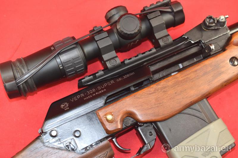 Opis: #8131 Karabinek Vepr-308-Super kal. 308 Win. Produkcja rosyjska (Molot) z roku 2002. Broń sprawna w 100% - niestety, po przejściach - mianowicie spadła poprzedniemu właścicielowi z ambony. Skutek: połamane łoże, które zostało sklejone - patrz fotki. Karabinek sprawdzony i wypróbowany przez rusznikarza. W komplecie dwa oryginalne magazynki - jeden o pojemności 5, drugi 10 naboi. Luneta celownicza Yukon Jager 1-4x24. Cena nowej w sklepie: 1800 złotych. Przewód lufy: w stanie fabrycznym. BROŃ DOWOZIMY NA TERENIE CAŁEGO KRAJU - RAZ W MIESIĄCU