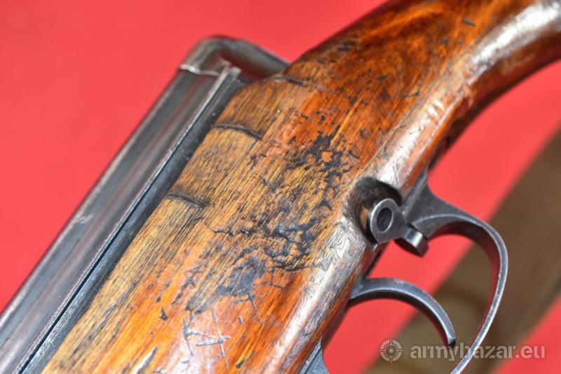 Opis: Wyprodukowany przez zakład nr 460 w Podolsku w roku 1941 - produkcja tego karabinu miała tam miejsce w okresie 1940-1941. Kolba z pełnymi oznaczeniami, nigdy nie szlifowana, nigdy nie remontowana - modelowy przykład, jak powinna wyglądać kolba, której nikt nigdy nie "upiększał", nie poddawał "renowacji" i nie "zrobił". Oksyda także jest oryginalna. Egzemplarz zgodny numerycznie - łącznie z magazynkiem (!). Karabin sprawdzony i wypróbowany przez rusznikarza. Przewód lufy: jasny, czysty. Gwint ostry i kompletny. Bardzo dobry. BROŃ DOWOZIMY NA TERENIE CAŁEGO KRAJU - RAZ W MIESIĄCU