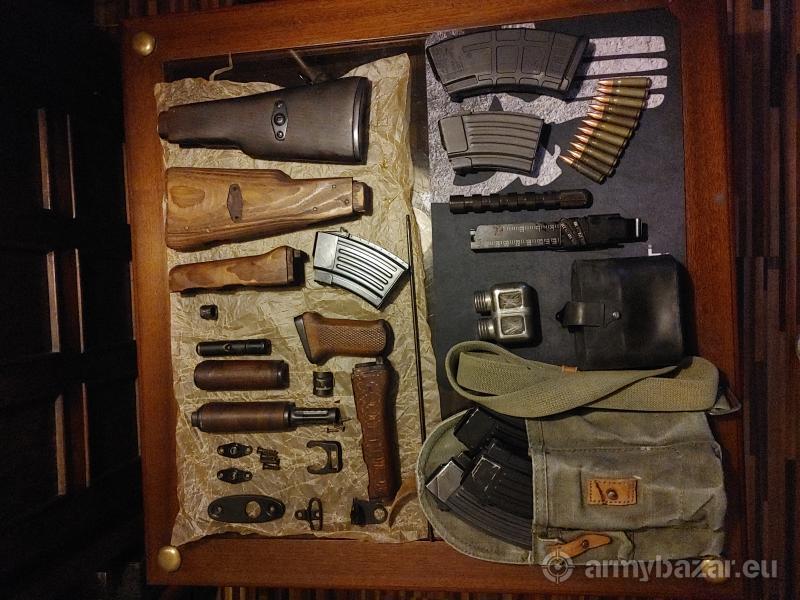 Opis: Witam, na sprzedaż. AK GN wz 63 +851szt 7.62x39 amunicji 6 magazynków w tym jeden na ślepe. Pełen komplet torba a wniej celownik, nasadka, nakładka na kolbe, smarowniczka, pas. Piękne bukowe drewno z praktycznie nieosiągalnym bukowym chwytem" dodatkowa rura gazowa. Drugi komplet drewna. Obecnie zmienione łoże chwyt magpul kolba magpul ctr adapter jmac custom muszka światłowodowa. Kompensator cerber. Komplet nie obejmuje kolimatora. Cena z kolimatorem +1000zł. Zapraszam chętne osoby z promesami i banknotami NBP.