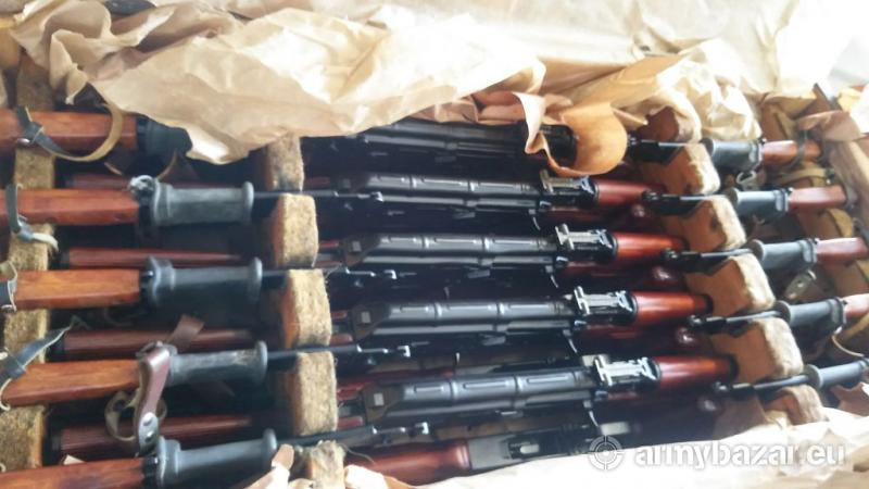 Opis: Radzieckie AKM stanie magazynowym, pełne ukompletowanie w postaci magazynków, torby, banetu, pasa, przybornika i olejarki. Broń zgodna numerycznie. Dostępne do wyboru magazynki starej I produkcji lub współczesniejsze ebonitoowe (patrz zdjęcia). Broń wyprodukowana w latach 1960-1980. Istnieje możliwośc dowozu po wcześniejszym umówieniu. Więcej zdjęc na naszej stronie: www.gun-dealer.pl tel. 508 109 402