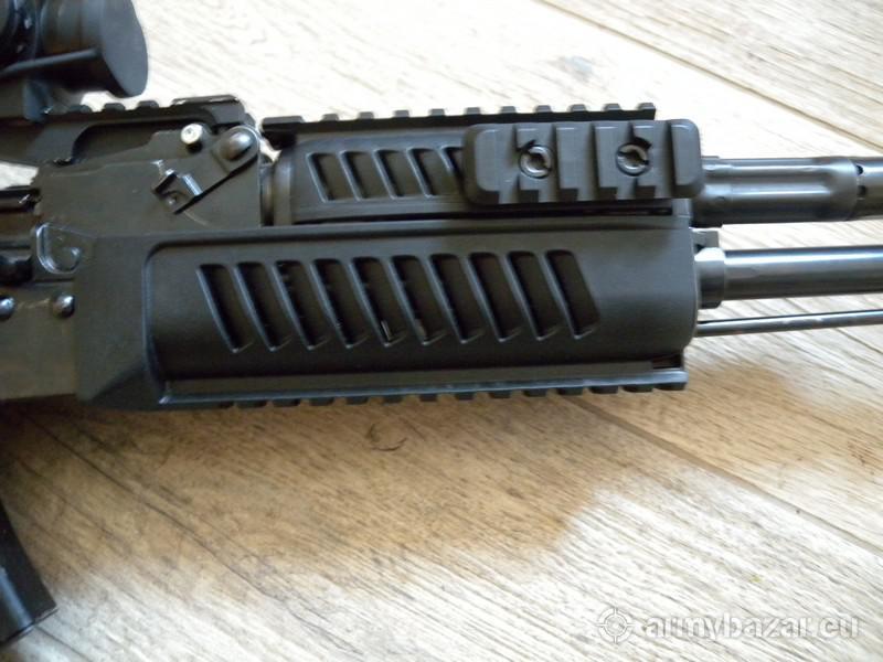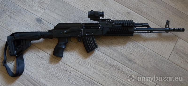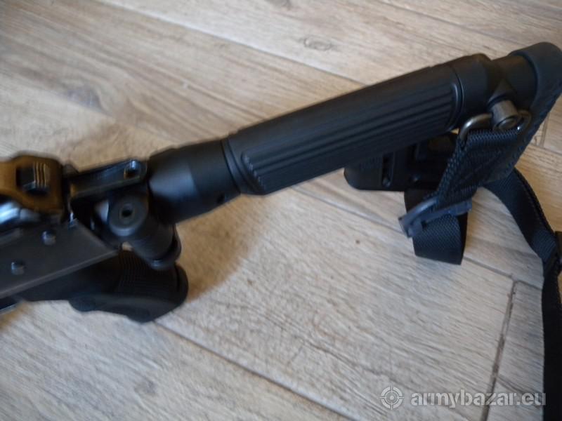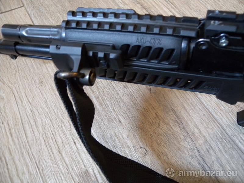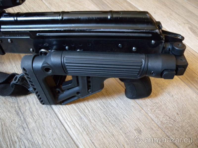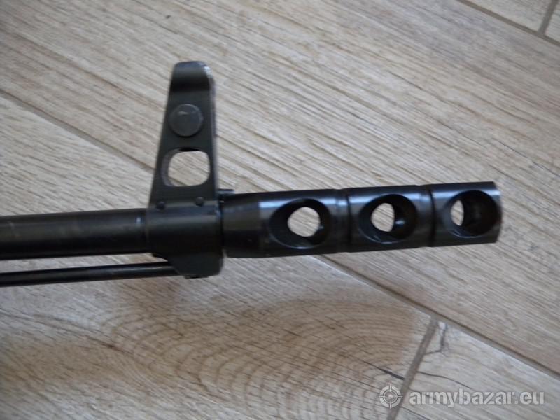 Opis: karabinek samopowtarzalny AKM zmodernizowany. Forma modernizacji opierała się na wymianie elementów drewnianych na firmowe elementy z tworzywa sztucznego, oraz dodaniu elementów celowniczych i tłumika płomienia. Wymienione elementy na foto. Elementy drewniane zdemontowane podczas modernizacji, ładownica wojskowa, sześć metalowych magazynków na 30 naboi oraz oryginalny bagnet będą dołączone w komplecie przy sprzedaży jako Gratis Karabinek dostępny na zezwolenie sportowe lub kolekcjonerskie