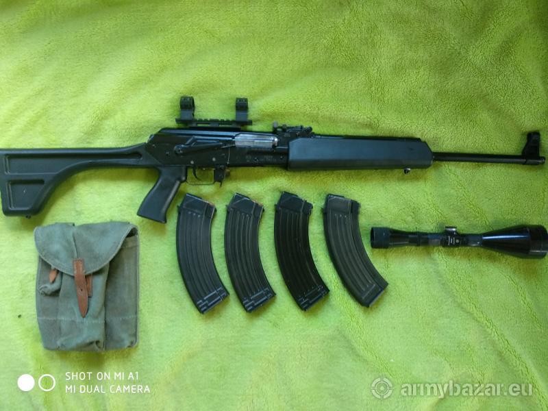 Opis: Dzień dobry, mam do sprzedania AK w bardzo fajnej wersji, produkcji rosyjskiej, słynnej fabryki Vyatskie Polyany. Karabin ma trochę dłuższą lufę, jest naprawdę celny (skupienie na 100m Sako ok. 3cm), bardzo dobry spust. Sprzedaje w komplecie z magazynkami, montażem bocznym pod lunetę i tym co widać na zdjęciach.