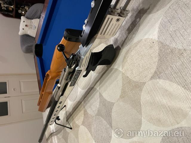 Opis: Karabinek wyczynowy, lufa selekcyjna długość 690,łoże aluminium + osada do benchrestu, super celny grupy poniżej 0,5 MOA 5x100m, bardzo mało używany stan idealny.