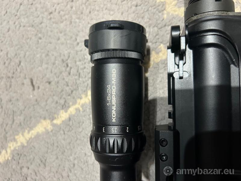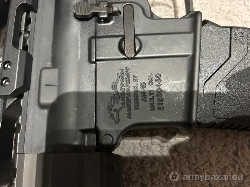 Opis: Sprzedam AR-15 Anderson. Karabin zmodyfikowany- nowe łoże(oryginał dokładam) poprawiające chwyt i dające możliwość montażu akcesoriów. Do tego luneta biegowa KONUSPRO 1-6x24 z podświetleniem celu. Dla osoby zdecydowanej dokładam 5 sztuk magazynków 30 nabojowych i jeden 10 nabojowy(krótki), pas do broni, zestaw do czyszczenia, ochronniki słuchu. Bron kupiona w sklepie z bronią Skawiński- mam na to fakturę. Z broni wystrzelone ok 500 sztuk. Dokładam także fajną, profesjonalna skrzynie transportową do broni.