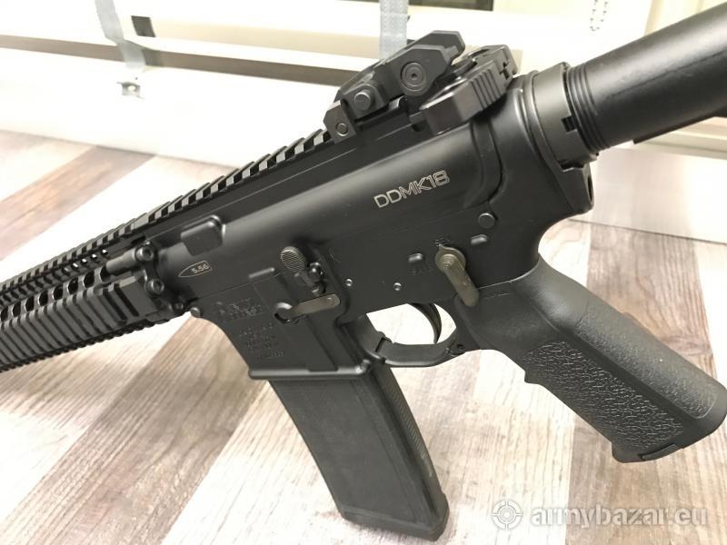 Opis: Na sprzedaż niemalże nowy karabinek Daniel Defense MK18 Dodatkowo: Kolba MagpuL CTR Chwyt Magpul MIAD Utrządzenie wylotowe AAC Dźwignia przeładowania AXTS Montaż pod kolbą QD Magpul Możliwość zakupu z przyrządami TROY + 500zł. W komplecie walizka z tworzywa, magazynek oryginalny i komplet dokumentów. Karabinek z przebiegiem kilku magazynków, kupiony w BUOS około pół roku temu.