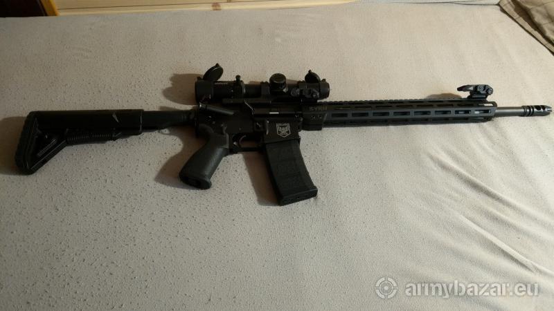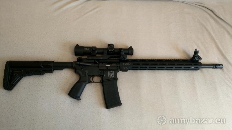 Opis: AR15 SVNR ARMS 223rem/5.56NATO, lufa 18", bardzo fajne łoże, bardzo wygodny chwyt i kolba, obustronna dźwignia przeładowania, super spust firmy NordArms, wymieniony buffer na cięższy, zołozony kompensator, jednoczęściowy montaż pod lunetę i skośne montaże pod składane przyrządy. 2 magi 30 nabojowe i 1 mag 10 nabojowy. w zestawie pokrowiec i luneta 1-6 OhHunt, chińska ale działa. Wszelkie info pod nr telefonu.