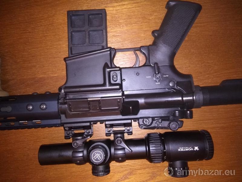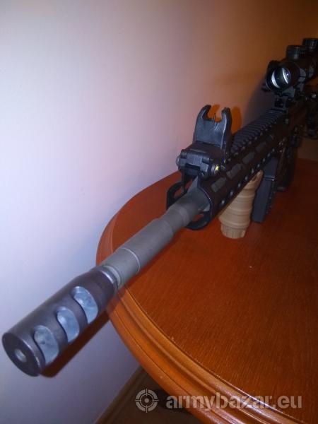 Opis: Sprzedam karabinek SDM M4 Carbine w kalibrze 5.56x45 / .223. Długość lufy 14.5 cala. Przebieg około 500 szt. SDM to córka spółka Norinco na rynek cywilny. Karabinek jest celny, spust chodzi płynnie i lekko , założone są sprężyny redukujące siłę JP które zostają w cenie. Jest obustronny bezpiecznik. W komplecie będzie jeden aluminiowy magazynek i oryginalny milspecowy flash hider oraz oryginalne łoże typu quad rail z barrel nutem Widoczny na zdjęciach kompensator 100zł, Biegówka Vortex crossfire II 1-4 z montażem stalowym i podwyższeniem 1000zl, Przyrządy oryginalne MBUS gen 2 komplet 400zl. Telefon 663-604-764 proszę chętnego o sms, oddzwonię. Karabinek jest w Koszalinie