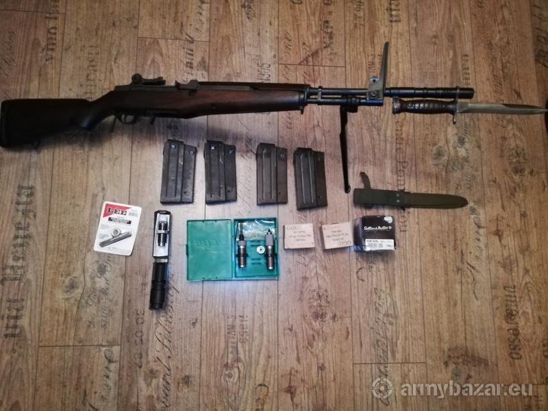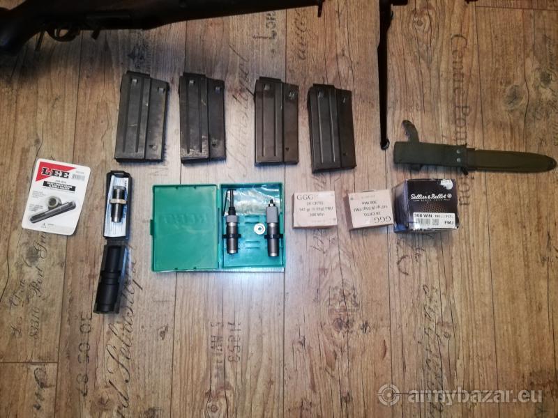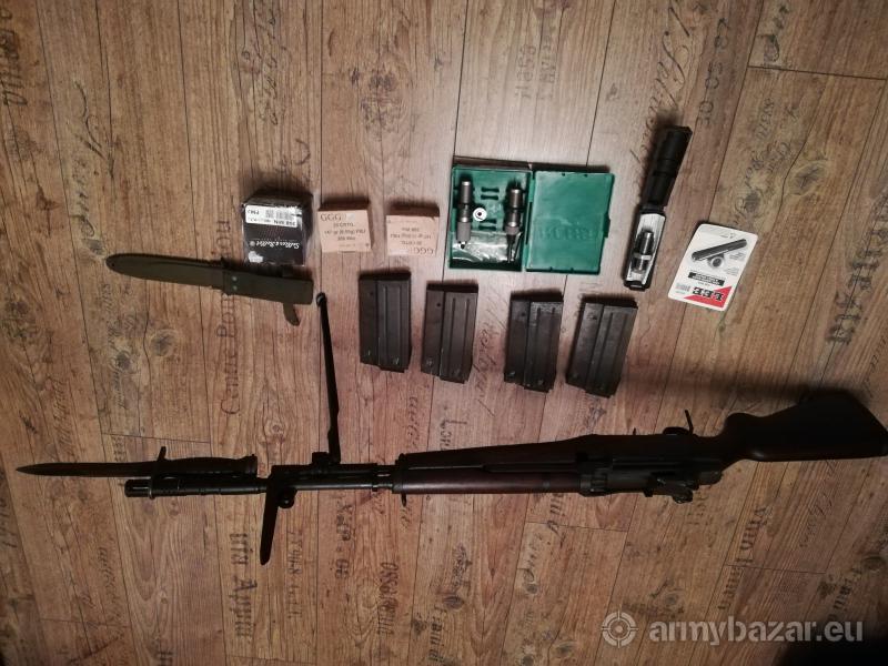 Opis: Beretta bm 59 zestaw tak jak na foto, stan broni bardzo dobry, W zestawie 4 magazynki, matryce do produkcji amo, bagnet, amo GG 40 sztuk i s&b 50 sztuk
