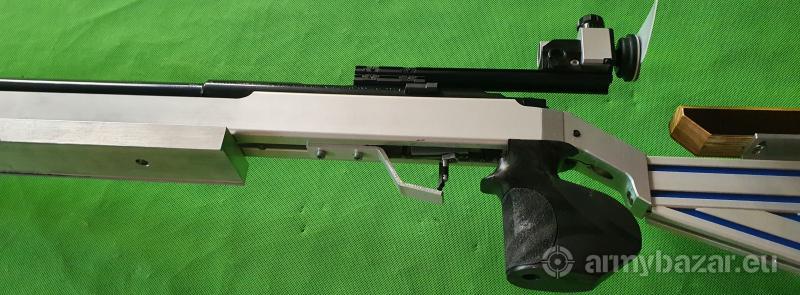 Opis: Najwyższej klasy niemiecki, jednostrzałowy karabinek wyczynowy w sztywnej wyczynowej, aluminiowej osadzie z precyzyjnie regulowaną baką i stopką. Ciężka, matchowa lufa, 20 – klikowy diopter mikrometryczny Walthera z przesłoną oka oraz duża mucha tunelowa z transparentnym insertem. Dopracowany mechanizm spustowy umożliwia precyzyjną i pełną regulację. Oferowany egzemplarz znajduje się w doskonałym stanie i jest w pełni zgodny numerycznie. Oczywiście lufa nieskazitelna. Sprzedaż wyłącznie dla osób/podmiotów uprawnionych zgodnie z obowiązującym prawem. Odbiór wyłącznie osobisty. Na życzenie bezpłatna dostawa do klienta. Tel. 512 306 160. Szczegóły na www. BronAmunicja.pl