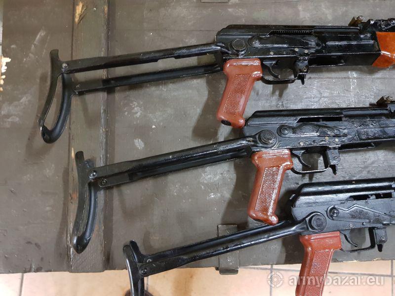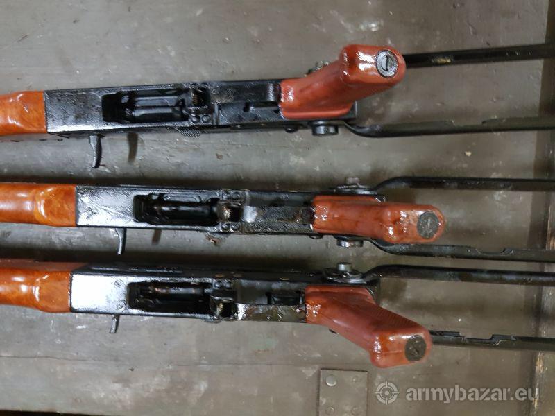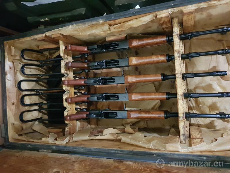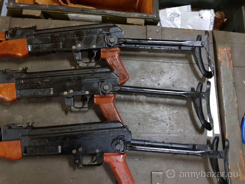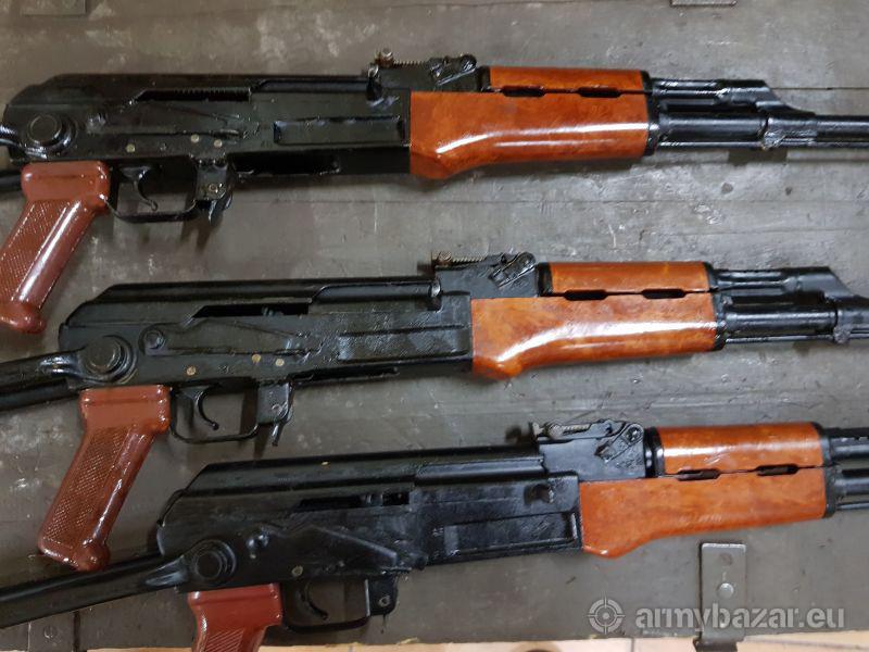 Opis: AKS-47. Jedna z wielu odmian karabinka z rodziny kałasznikowa. Komora zamkowa frezowana, kolba składana. Stan - fabryczny w całości pokryty wojskowym smarem stałej konserwacji. Pełna zgodność numeryczna w ukompletowaniu jeden magazynek. Stan broni jak na zdjeciach - menniczy. Przyjemność usunięcia smaru pozostawiamy nabywcy ;). Dostępne egzemplarze samoczynne i przerobione na ogień wyłącznie pojedynczy oczywiście z zachowaniem walorów kolekcjonerskich Zapraszamy www.gun-dealer.pl tel. 508 109 402.