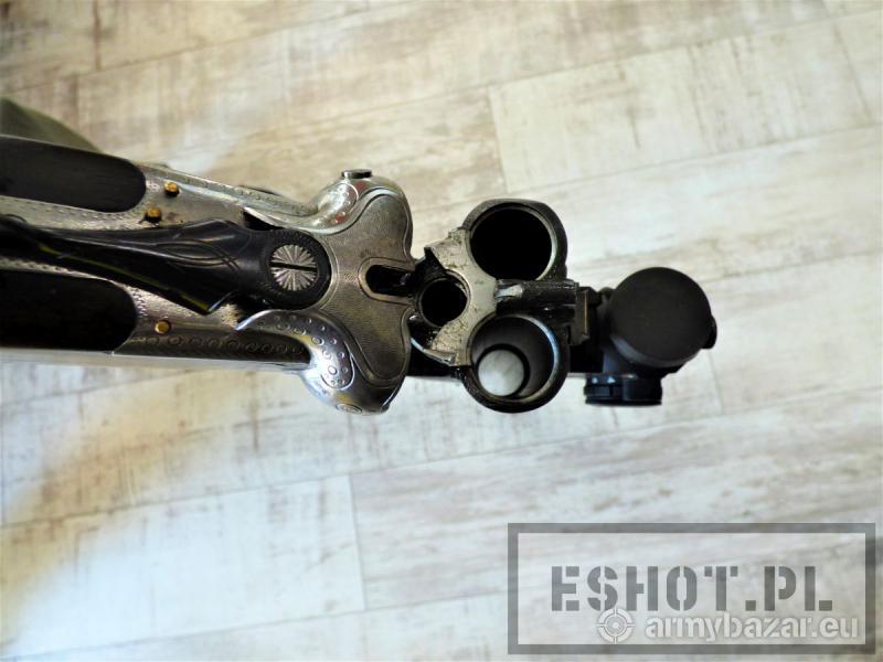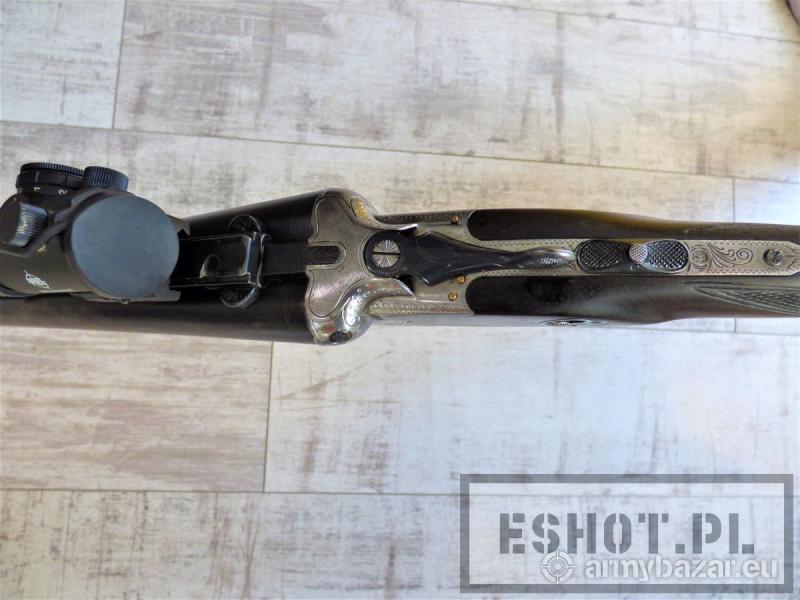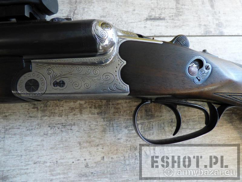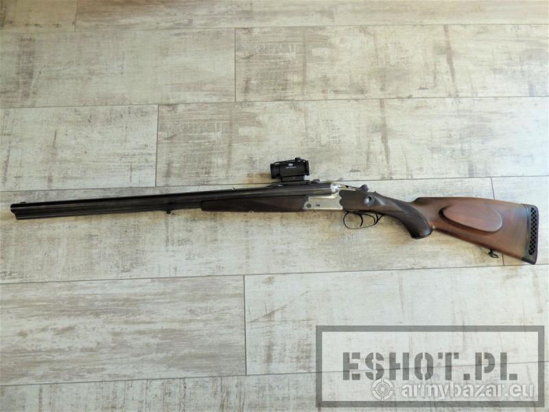 Opis: Dryling Merkel Suhl, kal. 12/70, 7x65R z kolimatorem KZ 03 firmy PWS osadzonym na dorabianym montażu. Broń używana w stanie bardzo dobrym. Amortyzowana stopka kolby WEGU. Osada z drewna orzechowego w bardzo dobrym stanie – bez pęknięć i wgnieceń Lufa zadbana, czysta w doskonałym stanie. Rok produkcji: 1971 Producent: Merkel Jagd-und Sportwaffen GmbH, Niemcy