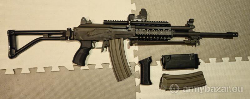 Opis: Na sprzedaż karabinek Galil w kalibrze 5,56 mm w ukompletowaniu widocznym na zdjęciach (poza kolimatorem). Zakupiony w 2023 r., od tego czasu przelot ok 300 szt. Stan broni dobry, normalne ślady użytkowania. Czyszczony po każdym strzelaniu. Karabinek bardzo celny. Do karabinka dorzucam: dwa magazynki stalowe, chwyt pistoletowy IMI Defence, długie łoże z szynami RIS, pozioma dźwignia przeładowania montowana na oryginalną, oryginalny dwójnóg. W skład zestawu nie wchodzi kolimator widoczny na zdjęciach. Zapraszam do obejrzenia broni we Wrocławiu. Odbiór wyłącznie osobisty.