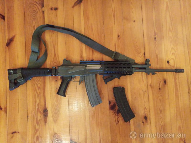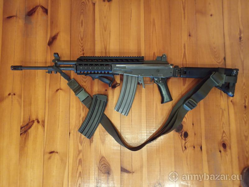 Opis: Galil z 1991 r. fosfatowany, widoczne otarcia od długotrwałego noszenia. Lufa stan idealny. Dwa magazynki, fosfat i malowany. Na broni pas od beryla, łoże z aluminium lotniczego w komplecie, zamontowane suwadło od ak aby rączka przełądowania nie uderzała w lunetę lub kolimatora. Oczywiście oryginalne suwadło i łoże w komplecie. Możliwość sprawdzenia na strzelnicy.