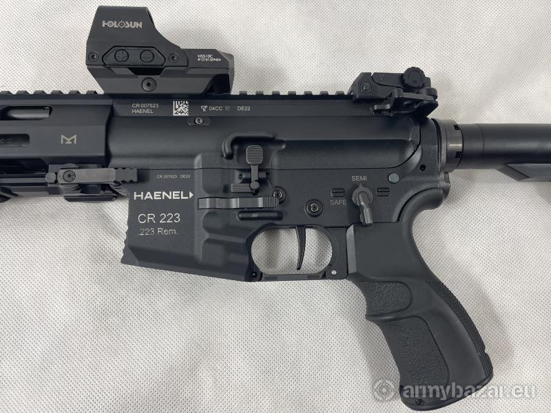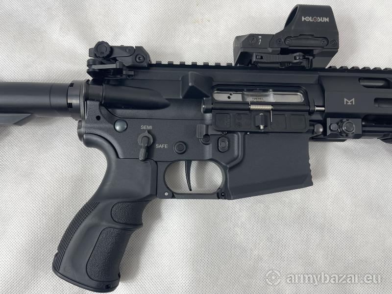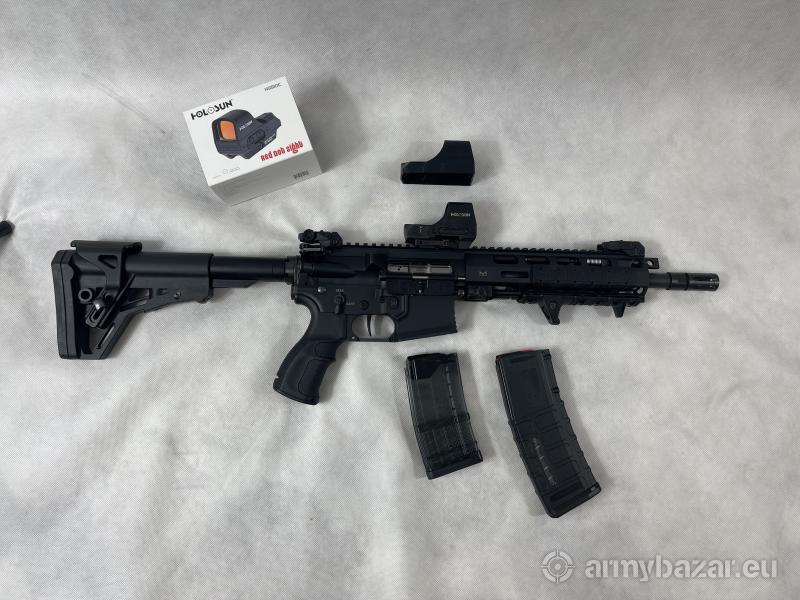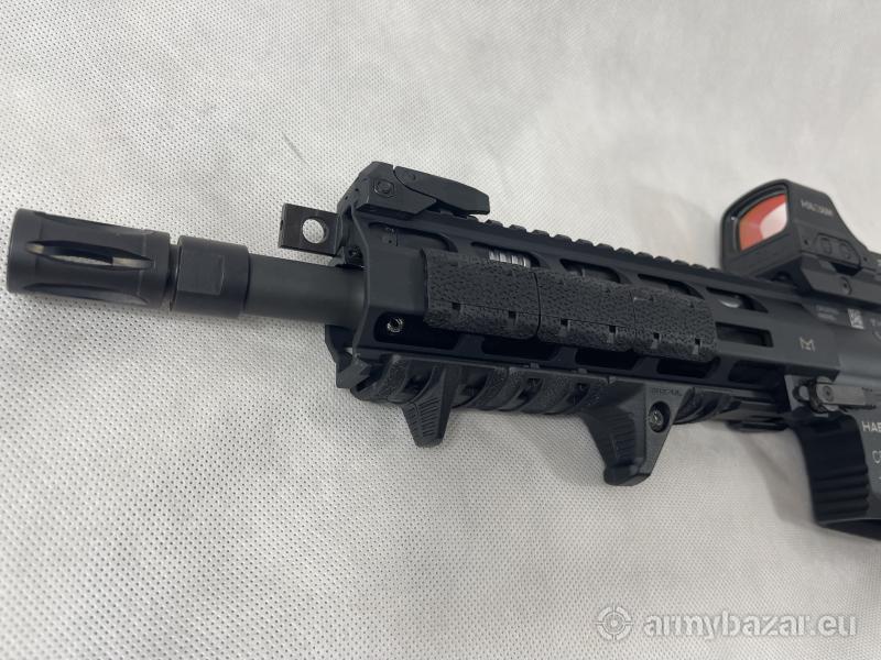 Opis: Z bólem serca sprzedaję tłokowca Haenel CR223 którego nikomu przedstawiać nie trzeba. Najwyższa jakość wykonania. Przelot 200szt max więc jak nowy. Dodatki z najwyższej półki. Mechanizm spust Match Trigger: https://huntac.de/en/p/wpntec-mimir-match-trigger-haenel-cr223-cr308 Regulowany blok gazowy: https://huntac.de/en/p/adjustable-5-position-gas-block-for-haenel-cr223 Holosun HS510C Solar Panel: https://www.specshop.pl/product-pol-15789-Holosun-Kolimator-Open-Reflex-HS510C-Multi-Reticle-Solar-Panel-Czarny.html + Magazynek Lancer 20 smoke + chwyt MAGPUL + Torba + papiery. Wartość samych dodatków to ponad 5K. Cena kompletu jak za goły karabinek.