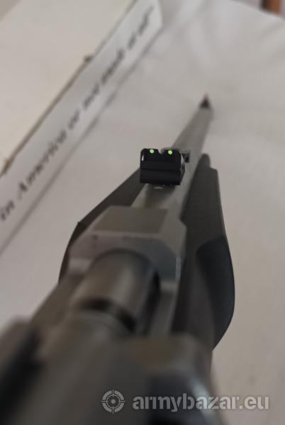Opis: Świetny karabin dla młodych i niewysokich strzelców. Wykonany ze stali nierdzewnej, wyposażony w jednoczęściowe, wzmocnione włóknem szklanym, łoże. Czterotaktowy zamek. Światłowodowe przyrządy celownicze - dwa zielone z tyłu i czerwony z przodu. Manualny bezpiecznik. Chwyt pistoletowy. Długość lufy 41 cm.. Długość całkowita 76 cm. Używany - stan bardzo dobry. Okolice Warszawy. Kontakt 604 10 86 83