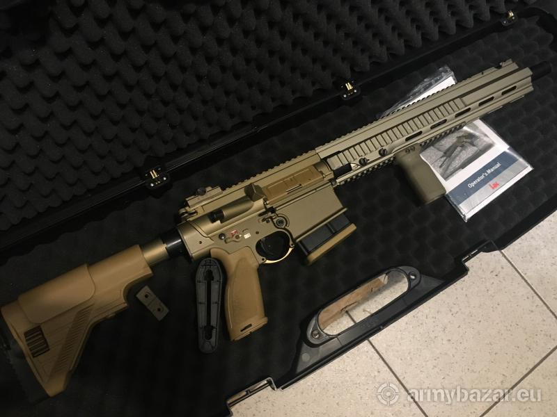 Opis: Witam do Sprzedania mam nowe bez znakow użytkowania HK MR 308 G28 w dość porzadanym kolorze RAL8000 kaliber oczywiście 308. Karabin został przetestowany w celu poprawności działania czyli przebieg ma 20szt W zestawie trzy magazynki jeden na 10szt i dwa na 20szt walizka HK i Ok 300szt amunicji na start w prezencie