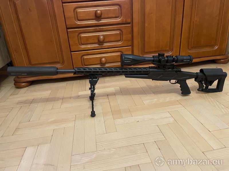 Opis: Witam. Mam do sprzedania karabin Howa 1500 HB w kalibrze 6.5 creedmor. Karabin wyposażony jest w: - Tłumik Recknagel ERA, - Luneta Vector Optics Taurus x6 5-30x56, - Bipod Leapers UTG składany Super Duty, - Montaż BURRIS P.E.P.R. 30mm. Wystrzelone z niego zostało niecałe 100 sztuk. Do zakupu dorzucam kilka paczek amunicji SB FMJTB 140gr oraz jedną Hornady ELD Match 140gr. Cena całego zestawu wyniosła ponad 11 000pln. Stan oceniam jako bardzo dobry.