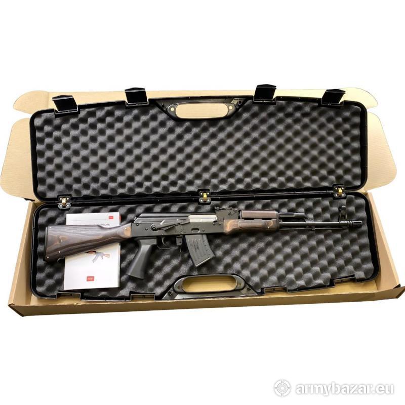 Opis: Nowy karabinek Jack w kalibrze 7,62x39 z chromowaną lufą. Wyposażony w drewniane okładziny w ciemnym malowaniu oraz bocznym montażem (jaskółczy ogon) , powiększony przełącznik rodzaju ognia, powiększony zrzut magazynka, magazynek: 10nb kuferek