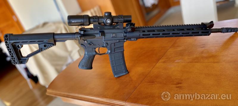 Opis: AR15 Savage Recon. 223 Rem, lufa 16 cali. Na osprzecie Blackhawk (regulowana kolba i chwyt pistoletowy), Po nastepujacych modyfikacjach: - Tlumik Strela z pokrowcem przeciw mirazom, - Regulowany blok gazowy Nord Arms; - Spust drop in regulowany Nord Arms Advance Match Grade Trigger 0.8 - 1.8 kg (dorzucam oryginalny spust blackhawk ze sprezynami JP) - Lzejszy buffer - Kompensator Strike Industires - Obustronny selektor ognia; - Obustronna dzwignia przeladowania typu raptor; - Offestowe przyrzady celownicze 45°; - Luneta Vortex Strike Eagle 1-8x24; - Montaz MAK Milmont; - Montaz na latarke (latarka nie na sprzedaz); - Dorzucam regulowany, dwupunktowy pas nosny Magpul