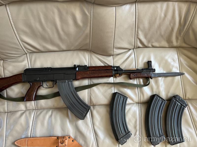 Opis: Jak w tytule karabin niezawodny w kalibrze 7,62x39 z 4 magazynkami bagnetem w stanie kolekcjonerskim i zapasam amunicji