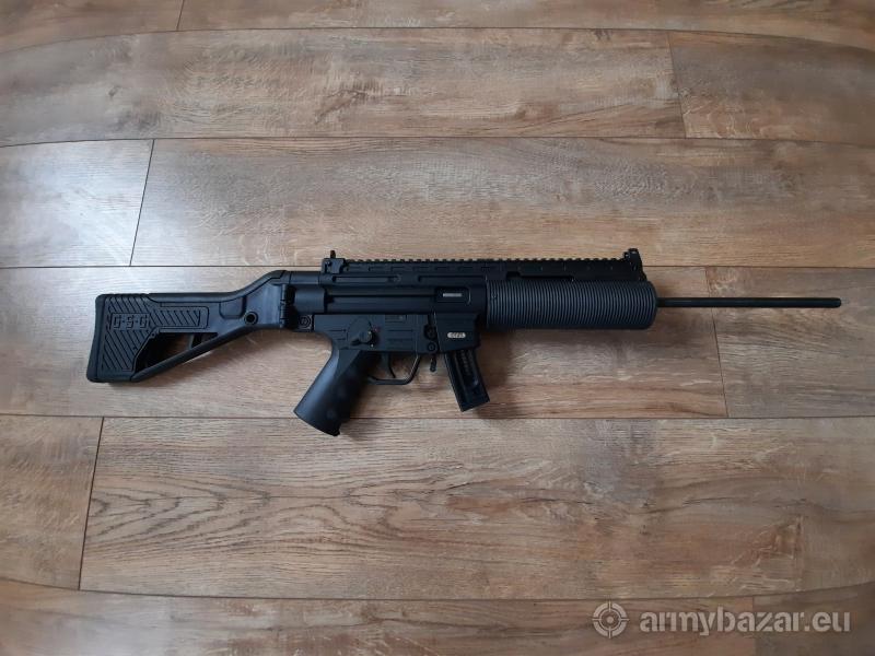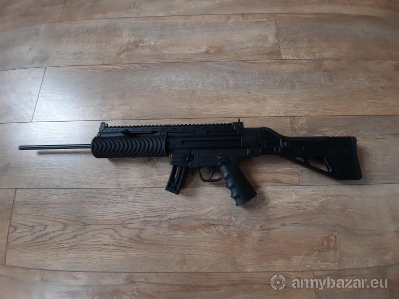 Opis: Samopowtarzalny karabinek bocznego zapłonu GSG 16 to replika kultowego HK MP-5 w bocznym zapłonie. Karabinek wykonano ze stali, aluminium i tworzywa. Wymienne magazynki dużej pojemności pozwalają na dużo zabawy i treningu. Karabinek wyposażony w przyrządy celownicze. Specyfikacja: Kaliber: .22 lr System samopowtarzalny z blokadą zamka w tylnym położeniu Lufa 16,5 cala, skok 1 na 16 cali Wymienny magazynek Waga: 2600 g www.snajper511.pl