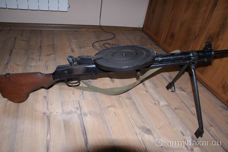Opis: karabin maszynowy strzelający ślepą amunicją. wojenny. W zestawie dodatkowo 3 magazynki i oryginalna skrzynka metalowa. Magazynki przystosowane do strzelania ślepą amunicją (brak zacięć przy ogniu ciągłym)