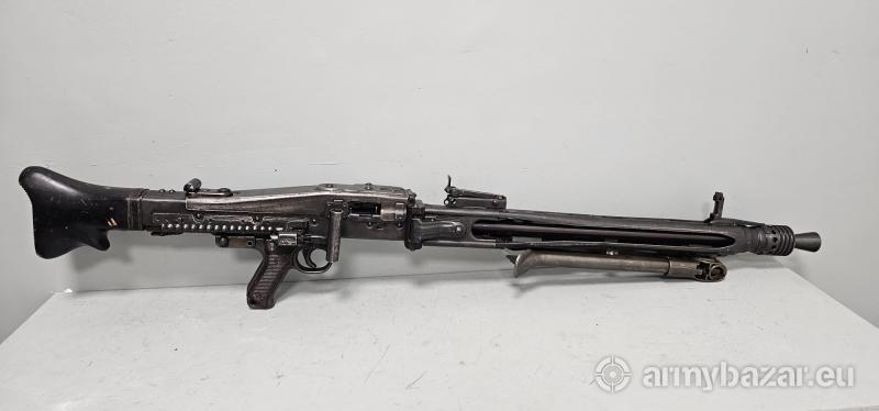 Opis: Jugosłowiański karabin maszynowy tak naprawdę to niemiecki MG42 wyprodukowany po wojnie na oryginalnych maszynach pochodzących z Niemiec. Po drugiej wojnie światowej Jugosławia otrzymała w ramach repasacji wojennych linie produkcyjną do produkcji tego karabinu. Karabin w bardzo dobrym stanie technicznym. Opcjonalnie może być sprzedany z konwersją na kaliber 7,62×51 Nato oraz lawetą. Cena za M53 8×57 12000 PLN, zestaw z konwersją na 7,62×51 – 17000 PLN, karabin+ konwersja i laweta 22000 PLN. Obecnie broń w wersji full-auto Na życzenie klienta broń może zostać pozbawiona możliwości strzelania ogniem ciągłym. Więcej zdjęć na stronie www.mkbarmory.pl Masz pytania: tel. +48 786 953 929