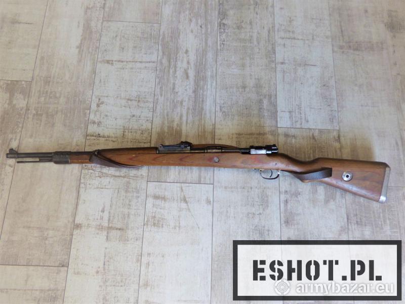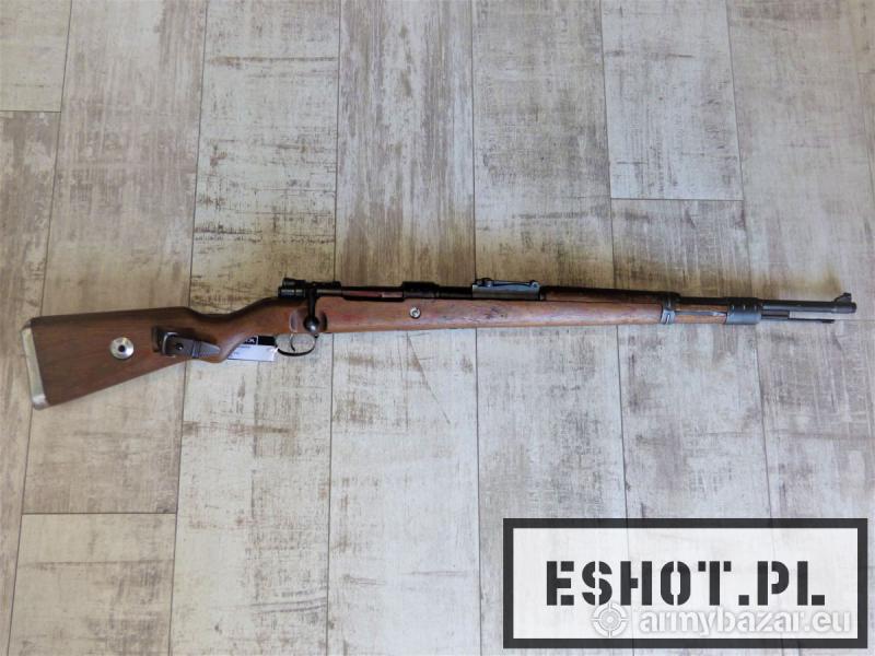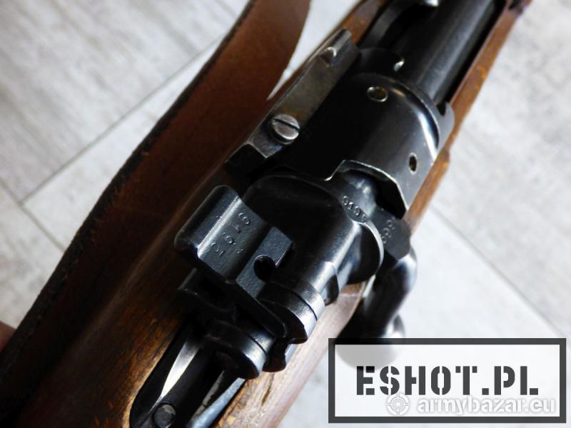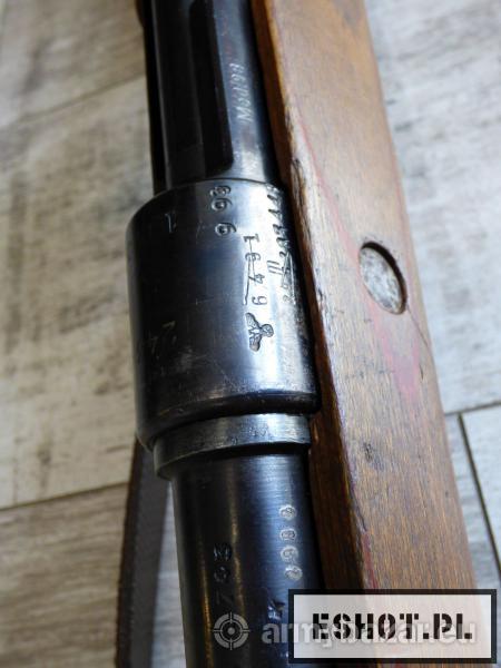 Opis: Karabin Mauser 98 z roku 1940. Wyprodukowany przez Mauser-Werke w Berlin-Borsigwalde. Bardzo dobry stan lufy, broń w pełni sprawna. Kolba wykonana ze sklejki w stanie dobrym. Komora zamkowa przygotowana do osadzenia montażu. Karabin posiada znaki odbiorów technicznych, tzw. waffenamty. W pełni sprawny technicznie. Nr broni: 993
