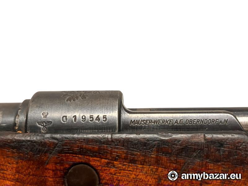 Opis: Historyczny Mauser K98 wyprodukowany w 1941 roku przez fabrykę Mauser Oberndorf dla Portugalii. Egzemplarz posiada oryginalne niemieckie bicia wojenne oraz jest zgodny numerycznie, co czyni go atrakcyjnym dla kolekcjonera. Karabin zachowany w konfiguracji z epoki, z klasyczną drewnianą osadą. Lufa w bardzo ładnym stanie – bez wżerów, z wyraźnym gwintem. Broń dobrze zakonserwowana, zgodna z typowym zużyciem dla swojego wieku. Świetna pozycja do kolekcji broni wojennej z okresu II wojny światowej. Stan: Dobry Broń można obejrzeć w Borowej obok Dęblina. Jest możliwość przestrzelania przed zakupem na prywatnej strzelnicy. Mój numer telefonu: 666 366 361.