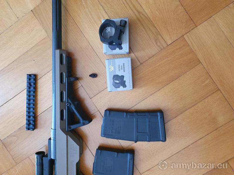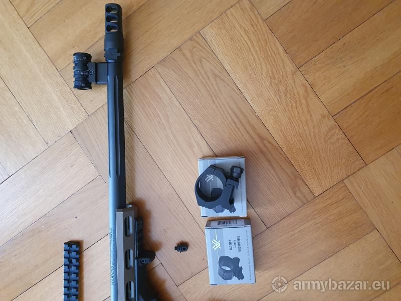 Opis: Mam do sprzedania karabin Mosberg Ligcht Chasis kal. 223 REM kupiony przeze mnie w sklepie.Dodatkiem do karabinu jest zestaw diopterów (Walther z przeziernikiem Anschutz 0,6-3 i na muszce Anschutz 2,8-4,8 in/6,4-9,0 aut),uchwyt pod karabin Magpula,magazynek na 20 szt. amun.,szyna picantynny ,montaż do lunety Wortex 30 mm wys.24,6mm.Karabin nieużywany i dlatego sprzedaję.(redukcja jednostek).Tel. 603 227 592