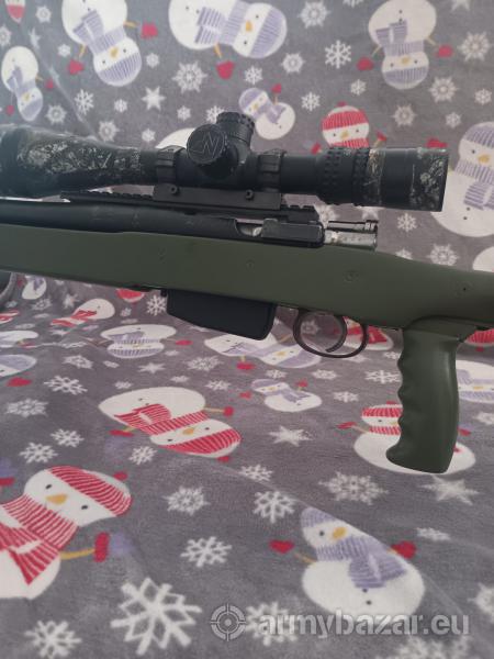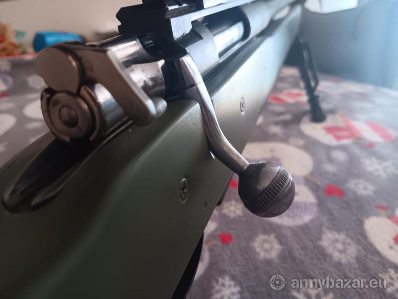 Opis: Karabin „Szwed” z lufą Schultz & Larsen (780mm) kal.6,5x55SE. Karabin stworzony od podstaw z myślą o strzelaniu precyzyjnym-jest tylko to co potrzeba do oddania precyzyjnego strzału. Osada z regulowaną kolbą(długość), stopką(wysokość, przekoszenie w osi pionowej), regulowany podpolicznik. Przerobiony bezpiecznik umożliwiający stosowanie bardzo niskich montaży. Spust regulowany z ustawieniem jedno lub dwuoporowym i co w Szwedach nie spotykane przekonstruowany tak, że można używać magazynek. Karabin strzela(jeśli strzelec nie przeszkadza) na amunicji fabrycznej skupienia poniżej 0,5MoA a