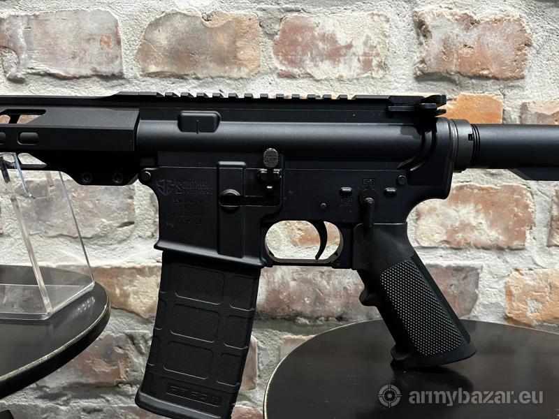 Opis: Karabin samopowtarzalny ST-15 w kalibrze .223Rem/5,56x45mm. Wyprodukowany przez amerykańską firmę Southern Tactical, sprowadzony i sprawdzony przez HOG. Broń wyposażona jest w lufę o długości 10,5″ (267mm) w standardzie MilSpec, azotowana, która charakteryzuje się skokiem gwintu 1:7. Wedle specyfikacji producenta wykonana jest ze stali 4160. Na końcu lufy znajdziemy gwint do montażu urządzenia wylotowego 1/2″x28. Broń jest fabrycznie nowa, objęta gwarancją. W komplecie jeden magazynek 30 nabojowy. Produkt koncesjonowany, dostępny za okazaniem odpowiednich dokumentów. Tel. 737 396 130 lub przez guns-ammo.pl