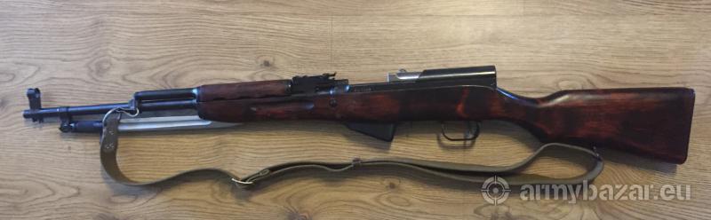 Opis: Sprzedam karabin SKS 45, rok produkcji 1954, kal. 7,62, karabin w bardzo ładnym stanie, całkowicie zgodny numerycznie, bardzo celny. Tel. 604569430