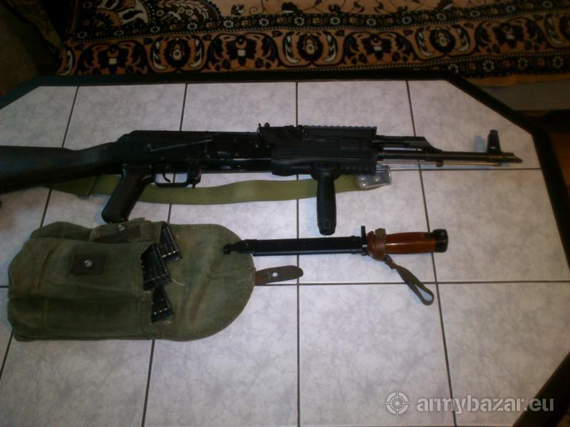 Opis: Karabin sportowy AK-47 kaliber 7,62x39 , karabin z oryginalną boczną szyną montażową do lunety SWD-dragonow, dodatkowo bagnet i trzy magazynki