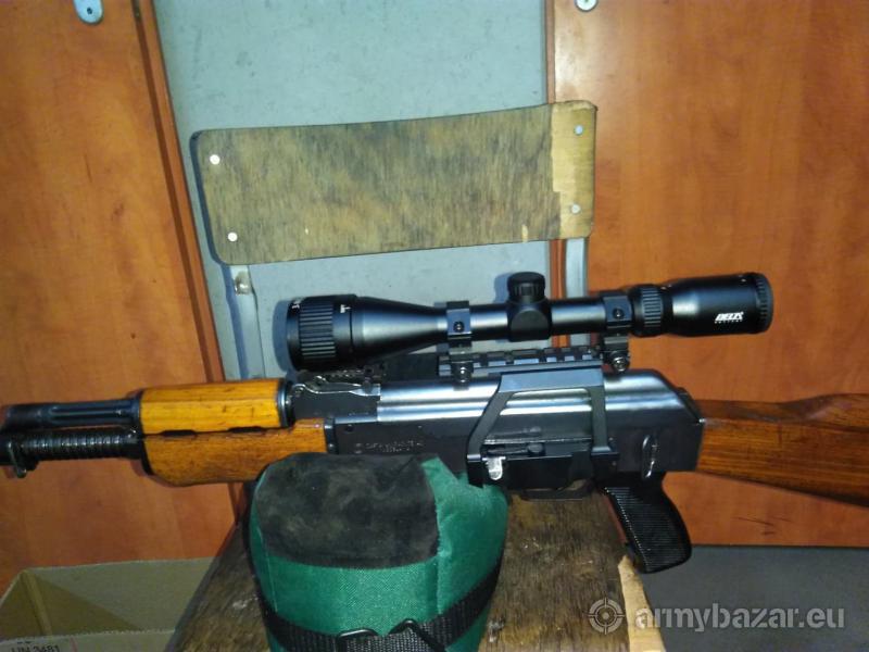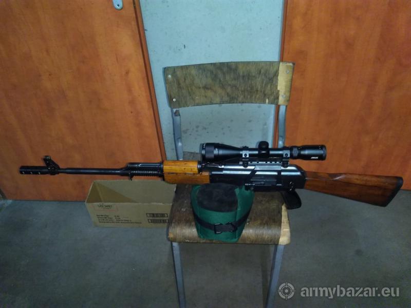 Opis: Mam do sprzedania karabin centralnego zapłonu zastava M-72 kal,7.62x39mm tak jak na foto lekko zmodyfikowany posiada szynę pod montaż lunety z lunetą 4-16x44 dwójnóg demontowany założony został kompensator spalin, dwa magazynki w zestawie do wyboru.