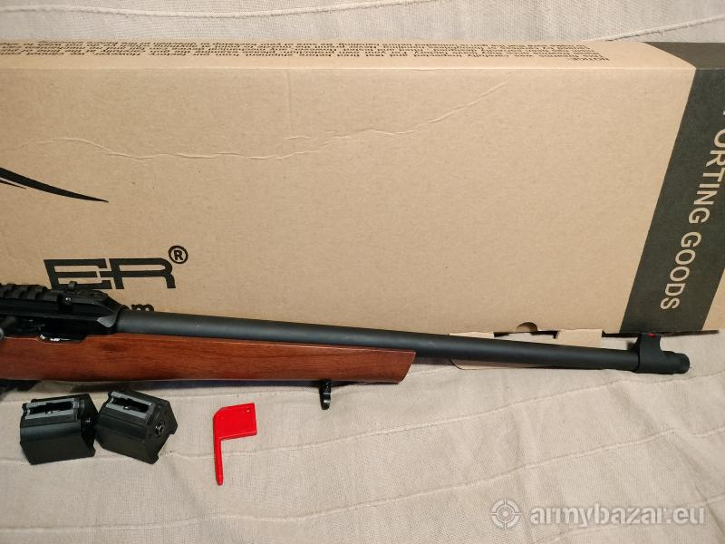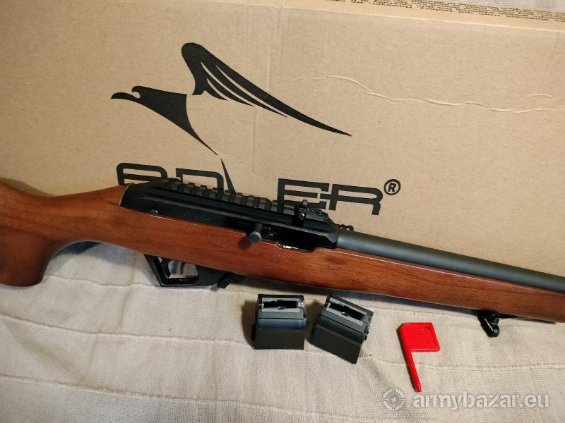 Opis: Karabinek samopowtarzalny bocznego zapłonu w kalibrze 22LR. Sprawny, w bardzo dobrym stanie (ryski i otarcia na drewnianym łożu oraz przy oknie wyrzutnika). W zestawie: karabinek, dwa magazynki, instrukcja oraz oryginalne pudełko. Lokalizacja Łęczna